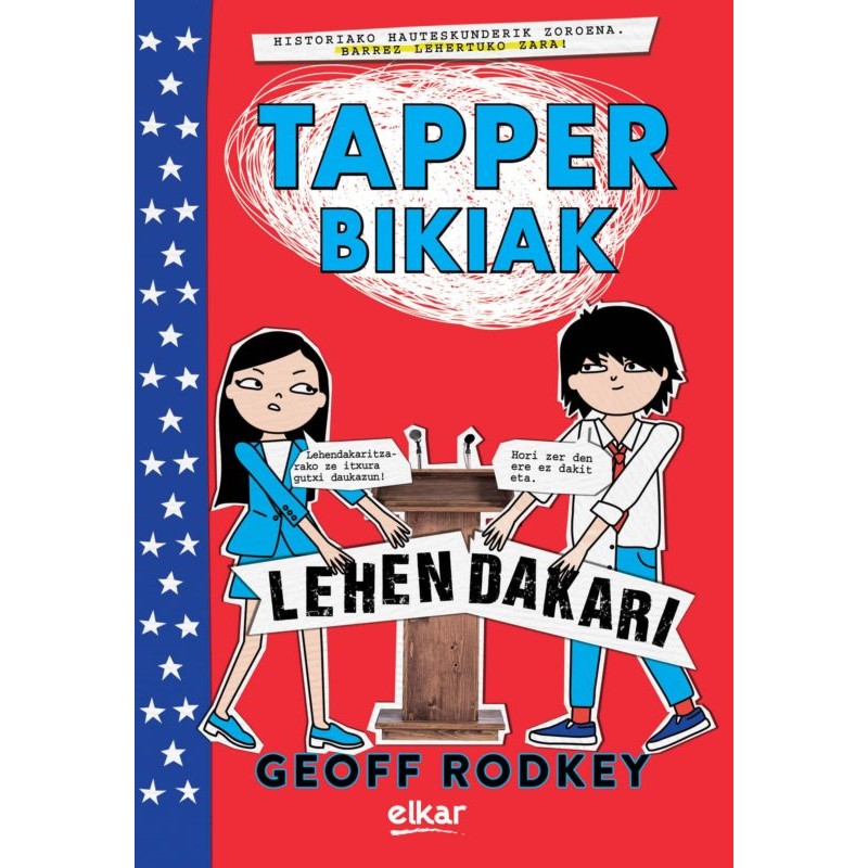 Edición en euskera del tercer título de la colección juvenil Los Gemelos Tapper, Los gemelos quieren ser presidentes.