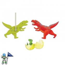 Incluye material para crear 6 modelos de dinosaurios diferentes. 27 enganches parisinos y 6 bastones para crear el títere.