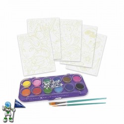 Barnean hartzen ditu: koloreztatzeko 5 xafla, 12 kolore desberdineko akuarela-kutxatila eta 2 pintzel, historia osoa Nebulia, jarraibideak.