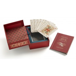 Este exquisito estuche contiene una baraja de 54 cartas con la que rinde homenaje a Lewis Carroll y a sus inolvidables personajes.
