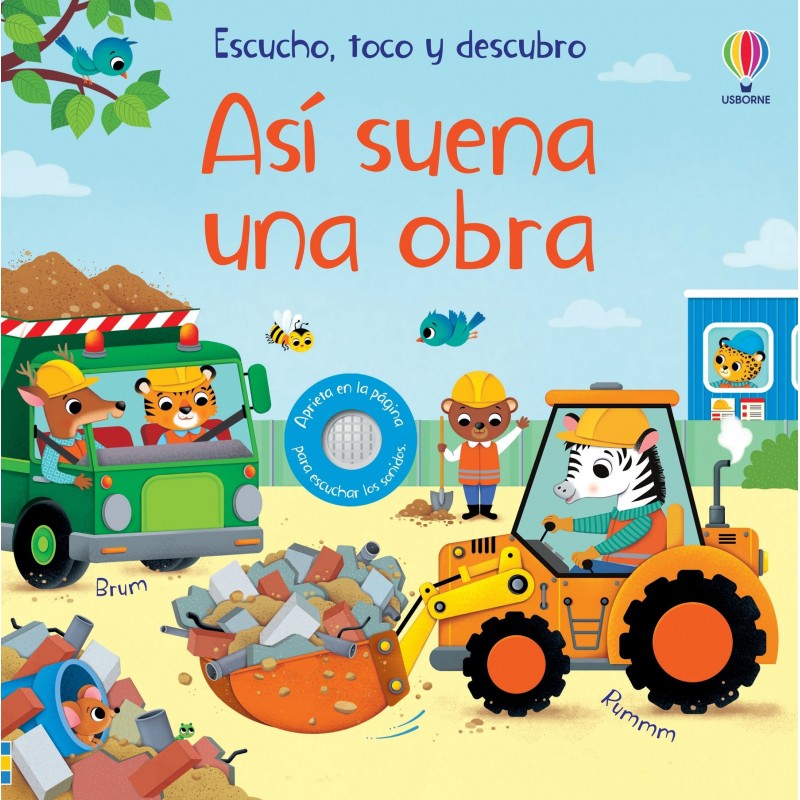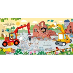 Un libro sonoro con diez botones para escuchar cómo cobra vida un sitio de construcción y que además ilustra los diferentes trabajos que pueden llegar a realizar los obreros. En cuanto a los sonidos, los pequeños podrán oír cómo retumban las excavadoras, cómo pitan los camiones o cómo suenan las sierras eléctricas. Con escenas protagonizadas por tiernos animales. Libro de sonidos recomendado a partir de 1 año.