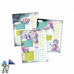 60 orrialde beltzeko bloka koloreztatzeko eta 8 kolore neon tinta, historia osoa Coralia, argibideak.