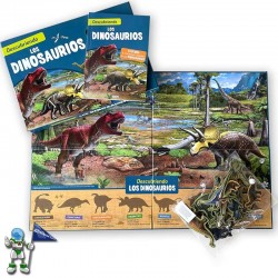 Dinosauruen AUZOU kutxa liburu batekin, imanak eta taula batekin. Dinosauruen datu interesgarriak ikasi eta kokatu imanak taularen gainean familiak osatuz eta ezagutuz zeintzuk ziren haien bizitzeko formak eta habitat-ak.