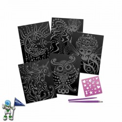 Skartch pack honekin txikiak erlaxatu ahal izango dira ezkutatzen diren irudi koloretsuak ikusiz. Hazka egin puntzoiaren laguntzaz, eta txantiloiak erabili zure xaflei marrazkiak eransteko eta bakarrak egiteko.