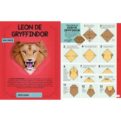 Podrás crear piezas de origami espectaculares, como el Ford Anglia volador o la cabaña de Hagrid, y también personajes conocidos, como elfos domésticos, dementores o la rata Scabbers. Además, ¡podrás hacerte tu propio escudo de Hogwarts! El libro también cuenta con fotos a color y hojas especiales para hacer tus origami.