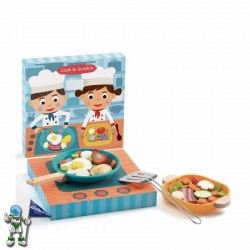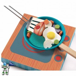 Sukaldarien joko dibertigarria. Sukaldatzen jolasteko DJECO jokoa. Zartaginaren hondoan belkro bat dago elikagaiak itsasteko; elikagaien konbinazio egokiak egin beharko ditugu. Zartaginari buelta ematen badiogu, kontuz!. Edukia: egurrezko kutxa bat, tresna guztiak gordetzeko eta iraultzean aurkezpen-erretilu bihurtzen dena; zurezko zartagin bat, belkro-hondoa duena, elikagai batzuei eusteko; espatula bat; plater bat; zurezko eta belkrozko 6 elikagai; feltrozko 28 elikagai.