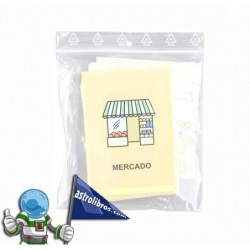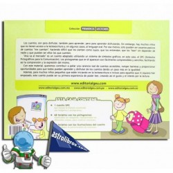 El cuento viene presentado en una caja, acompañado de 68 tarjetas con los pictogramas clasificadas en categorías, representadas en diferentes colores, para construir oraciones y 15 tarjetas con las ilustraciones del cuento para trabajar la estructuración de las oraciones.