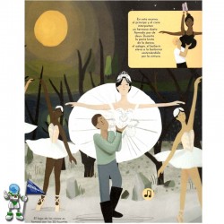 Libro con melodias sobre ballet editado por Bruño. Como si estuvieras en primera fila de un teatro, en este álbum musical podrás escuchar melodías de los nueve ballets más famosos de la historia. Al pulsar el dibujo de la nota en cada doble página se activa un fragmento musical de diez segundos y empezarás un fabuloso viaje lleno de aventuras. Con espectaculares ilustraciones y todas las historias que inspiraron cada obra, detalles sobre los pasos de ballet más importantes e información y divertidas curiosidades sobre diferentes instrumentos musicales.
