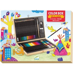 Un compacto maletín para llevar a todas partes con todo lo necesario para colorear, pintar y dibujar. El exterior del maletín, de papel craft natural, está adornado con una cenefa que se puede colorear para personalizarlo. ¡Un precioso regalo para pequeños artistas!