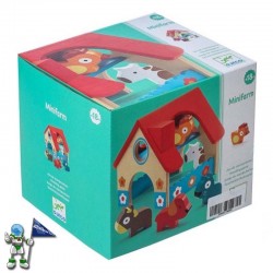 Mini granja de madera con piezas grandes y manejables para laspequeñas manos de los niños.
