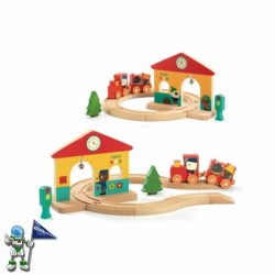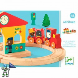 Zurezko zirkuitua duen trenekotxoa. DJECOren egurrezko jostailu ederra, hirian duen zirkuituarekin. Zurezko piezak ahokatuz egiten du bidea, trena bertatik mugitu ahal izateko. Pieza apaingarriak ditu: semaforoa, zuhaitza, tren geltokia.
