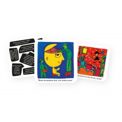 14 kartulina. Bakoitzean egoera edo eszena bat azaltzen da, ilustrazio apropos baten bidez pentsamendu filosofikora salto egiteko.