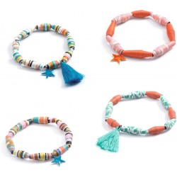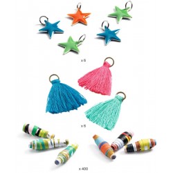 Un cofre creativo para hacer una multitud de pulseras de colores fabricando uno mismo las cuentas de papel. El niño corta las hojas de motivos estampados en tiras, las pega y luego las envuelve alrededor de una varilla. ¡Las cuentas estarán listas para introducirse en un hilo elástico y crear bonitas joyas! Algunas pueden decorarse con una borla o una estrella de color.
