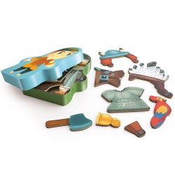 Egurrezko ebakigarri magnetikoak. Oso iraunkorrak eta erraz eramateko leku batetik bestera bere kutxatxoan.Pirata eta indiarra jantzi osagarri guztiekin.