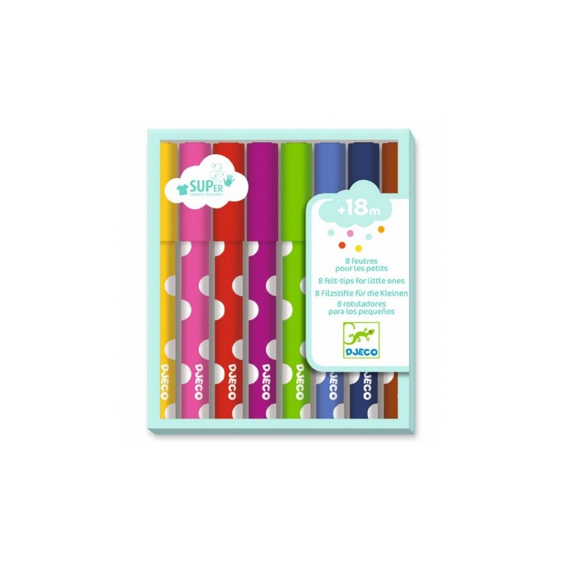Kutxak kolore desberdinetako 8 errotuladore ditu.