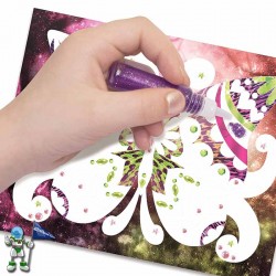 Nebulous Stars-eko zure pertsonaia gogokoenen 5 purpurina-xafla apaintzen ditu. Oso erraza da eta emaitza ederra da. Askatu laminen itsasgarria eta zabaldu purpurina pintzelaren laguntzaz.