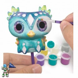 Gure Nebulous Starseko lagunik onenak. Margotu eta bildu bere begi distiratsuekin begiratuko dizuten 6 izaki fantastiko hauek. Aura koloreztatzeko eskulan dibertigarria. Kutxan: margotzeko figuratxoa, pintura akrilikoaren 5 kolore, purpurinazko berniza, 2 pintzel, plastikozko zotza, imitaziozko diamanteak, jarraibideak.