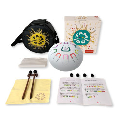 Incluye también dos baquetas y anillos para tocar con los dedos.