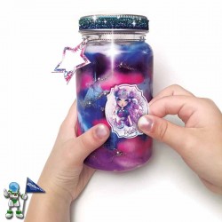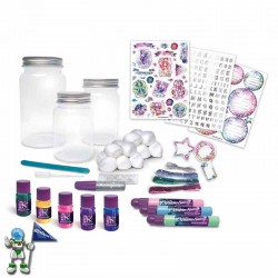 kUTXAREN BARNE: plastikozko 3 poto, 5 tinta-botilatxo, iluntasunean distiratzen duen 3 pintura-hodi, lentejuela-tarrotxoak, purpurina-tarrotxoa, 40 pegatina ezberdin baino gehiago, kolore metalizatuko letrak, tapakietarako 6 pegatina, 3 dekorazio-etiketa, 3 zinta metalizatu, soka metalizatua, plastikozko pipeta egurrezko makilatxoa, kotoizko bolak eta zinta bikoitzekoak. Nebuliaren historia osoa. Jarraibideak.